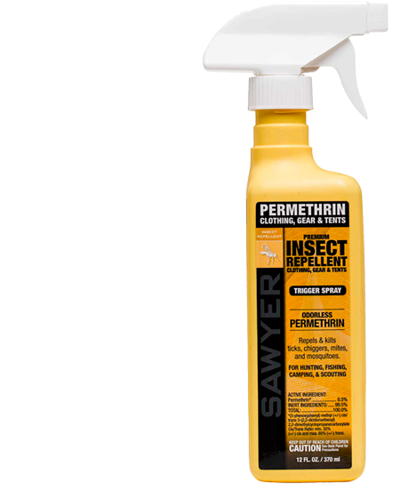 Para usar en la ropa, tiendas de campaña, sacos de dormir y otros equipos para actividades al aire libre, Sawyer Permethrin es más que un repelente de insectos: en realidad mata garrapatas, mosquitos, niguas, ácaros y más de 55 tipos de insectos. La Permetrina también es efectiva contra el Mosquito de la Fiebre Amarilla, que puede transmitir el virus del Zika.